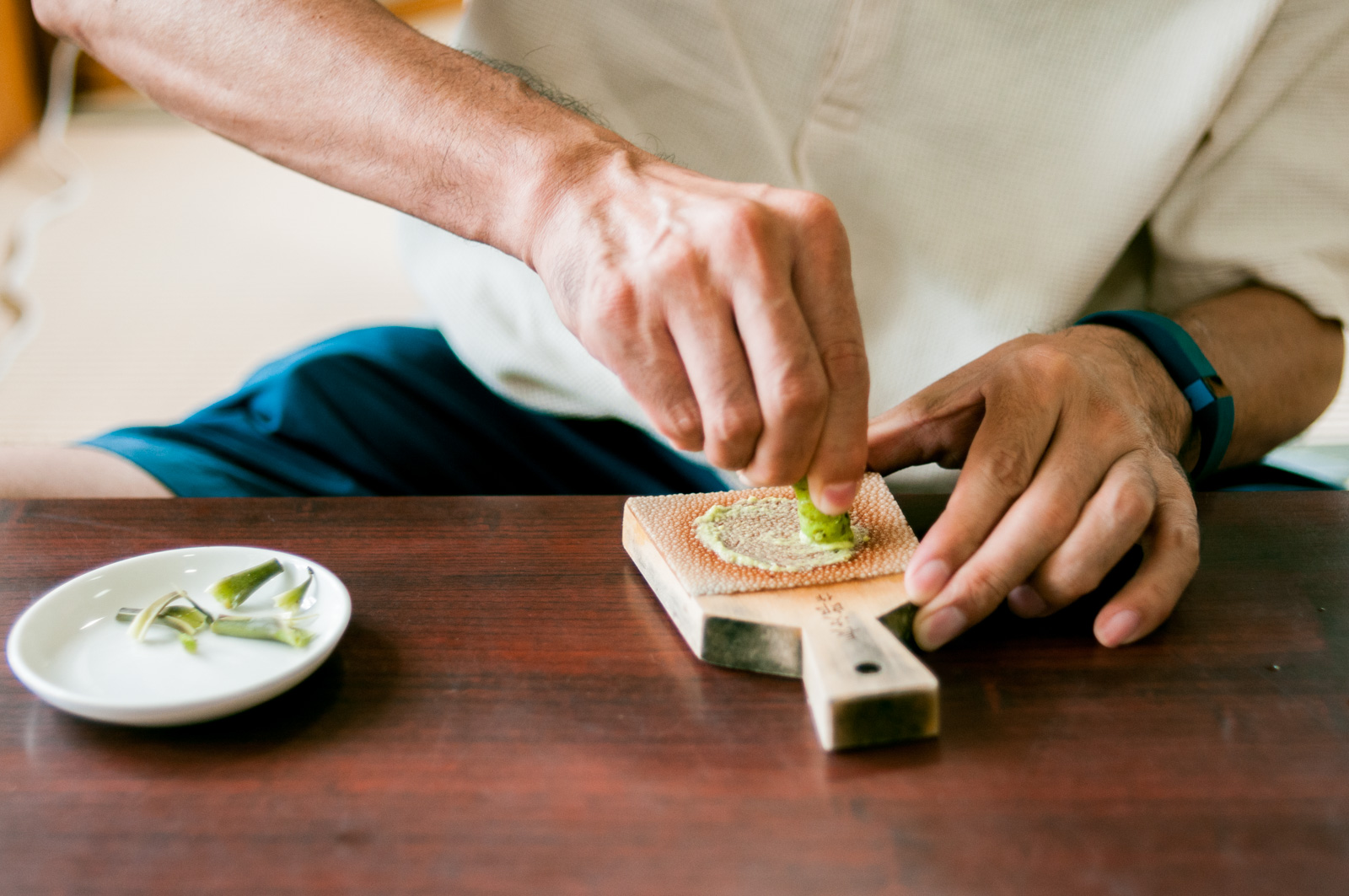 注文すると、最初に生わさびと鮫皮おろしがサッと運ばれてきます。